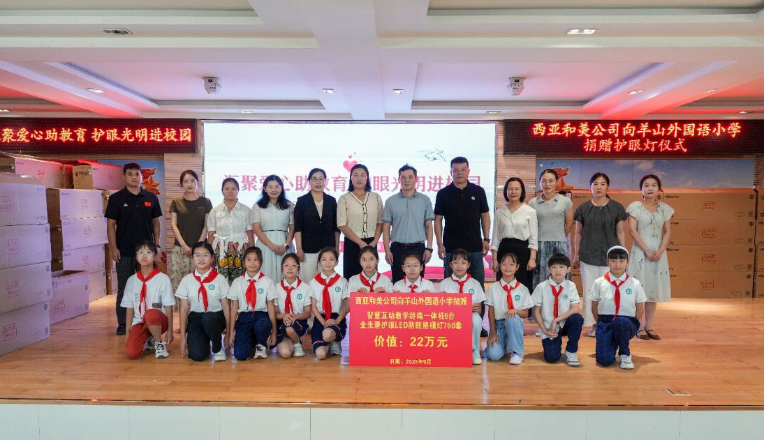 9月,新学期伊始,西亚和美公司公益助学活动走进信阳市羊山外国语小学,首批捐赠的750套全光谱护眼LED防眩格栅灯和6台智慧互动教学终端一体机正式投入使用。这批设备不仅提升了教室的光线环境,也为师生带来了更智能、更健康的教学体验,这是西亚连续二十一年来推行爱心助学行动的又一暖心举措。